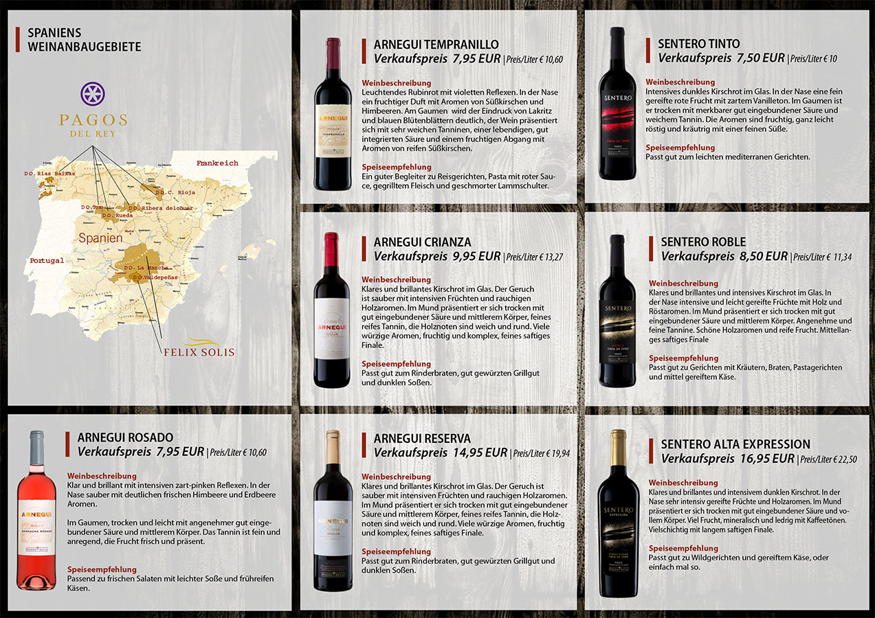 Perfekt für leichte Tapas, einschließlich Serrano Schinken, Chorizo, Paella, Fleischgerichte mit Gemüse oder mittelreifem Manchego-Käse.